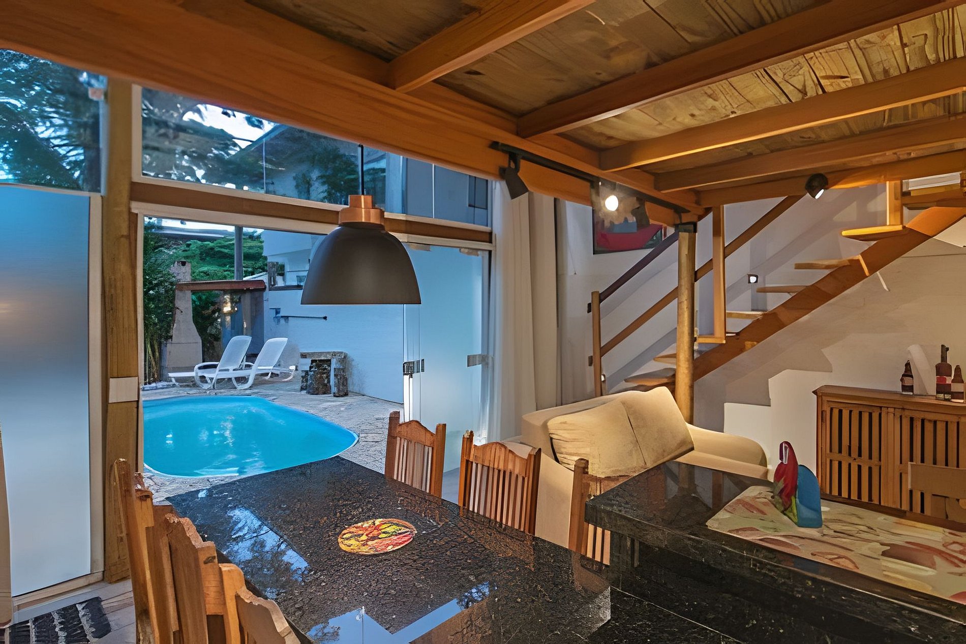 Disponível para todos hóspedes: Wi-fi, piscina ao ar livre, churrasqueira, estacionamento privativo.