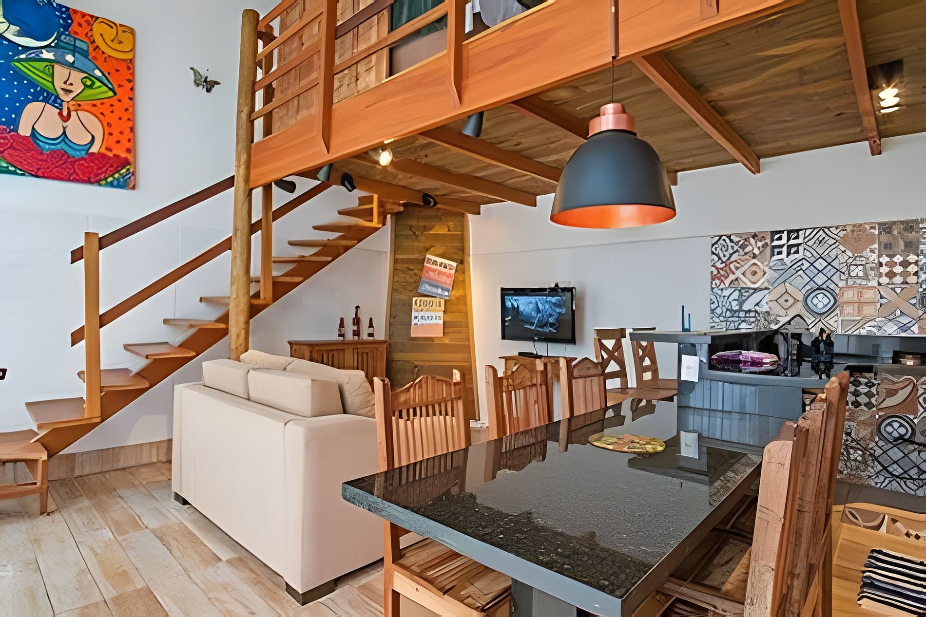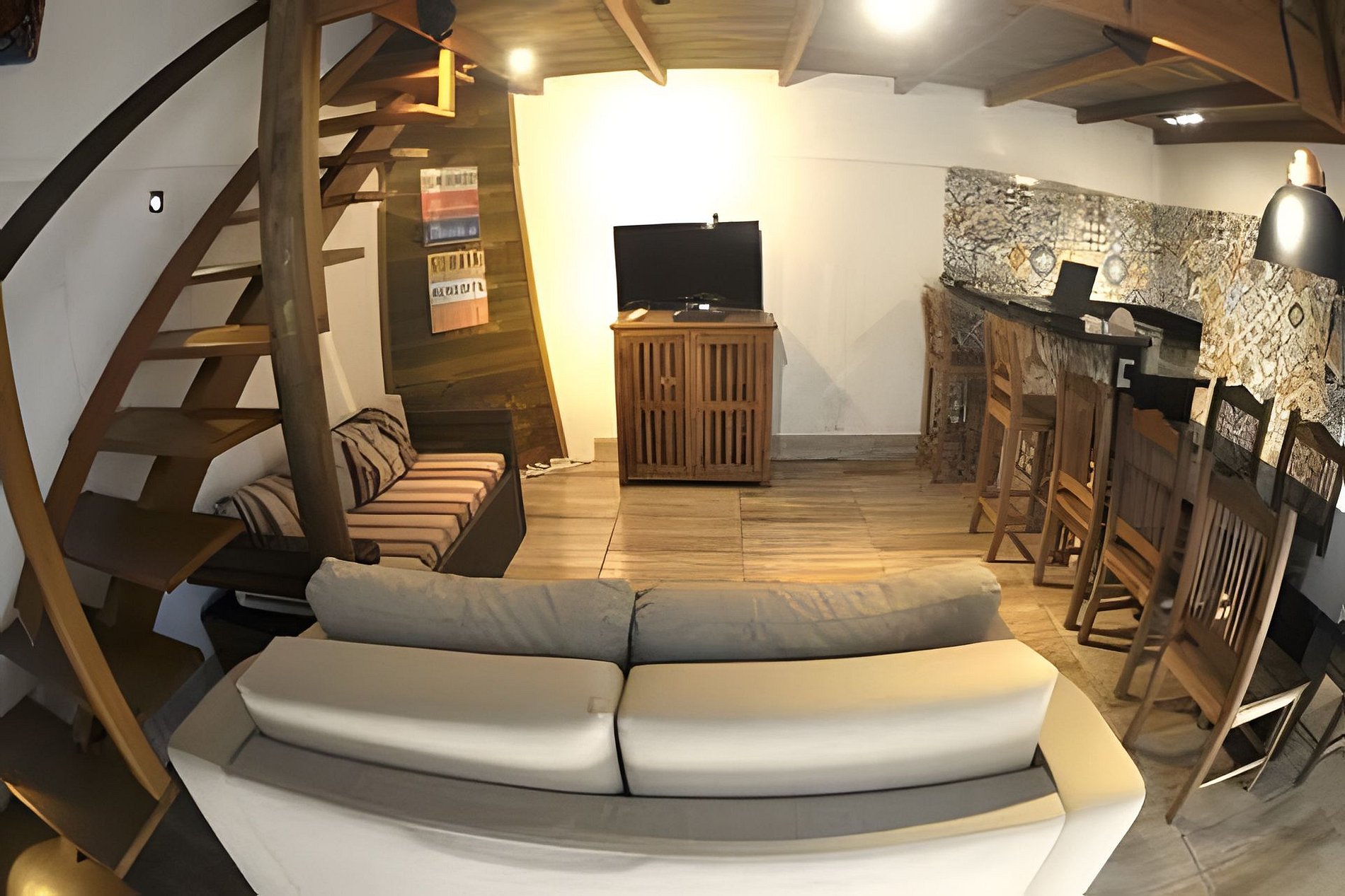 Nosso Studio Duplex é perfeito para passar com a família e amigos, são 50m^2 em dois pisos.